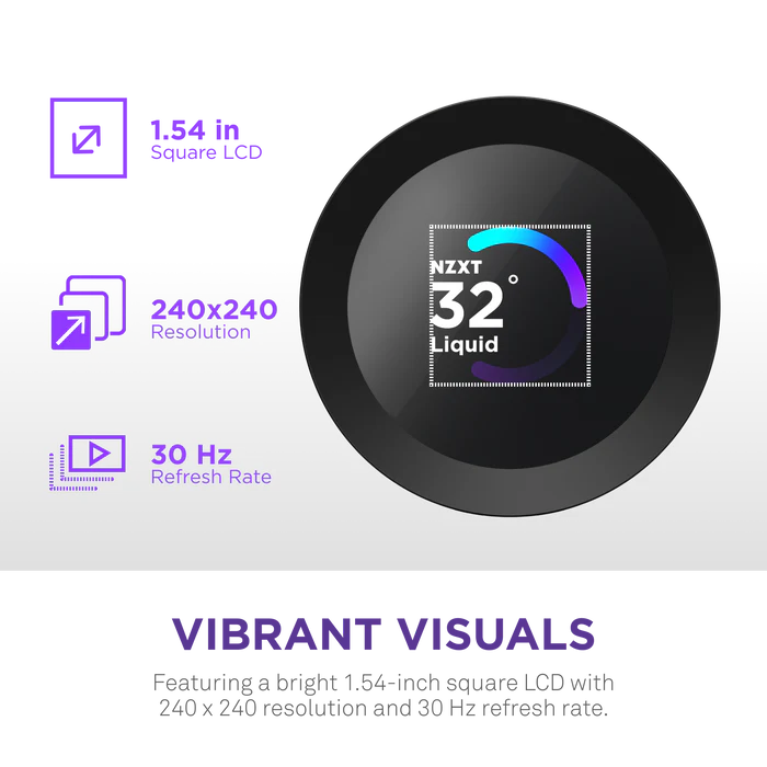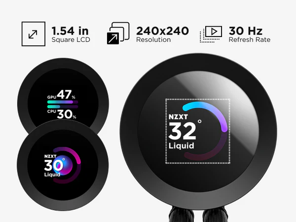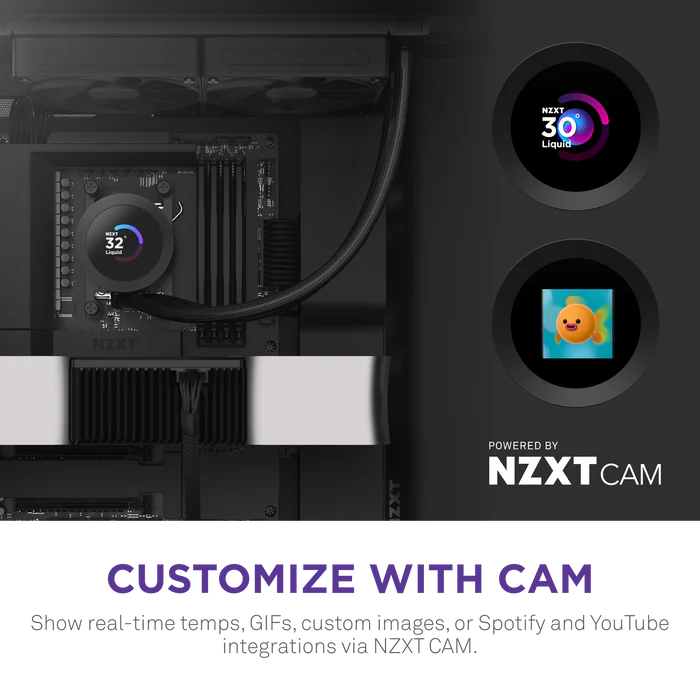 - NZXT CAM Software: Use NZXT CAM to monitor temps, customize the LCD display, and control fan and pump speeds — all through an intuitive, easy-to-use interface.